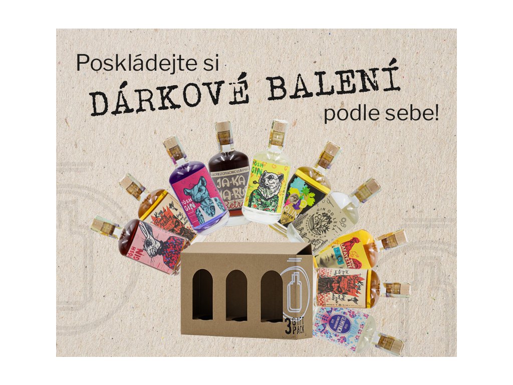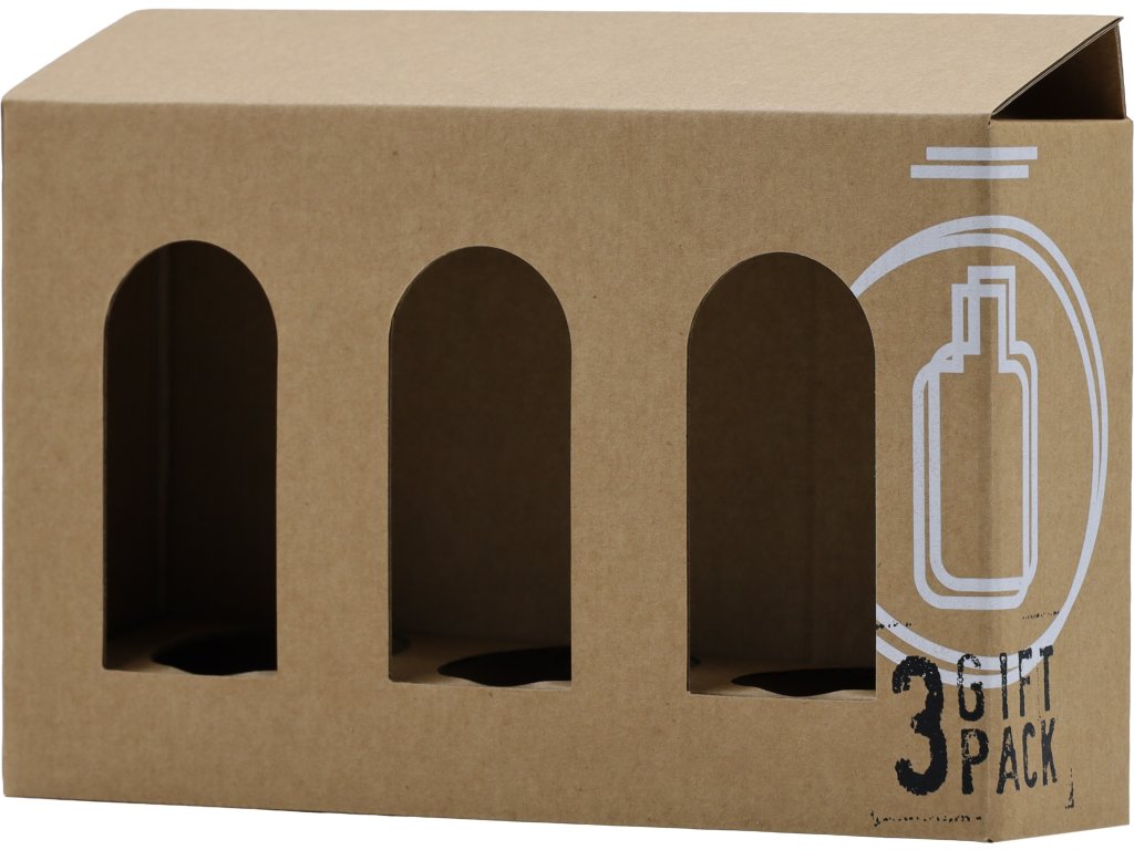 Lepenková dárková krabička s logem, nápisem 3 GIFT PACK na tři decové lahvičky dle vašeho výběru - vybrat si je můžete přímo tady v detailu. Rozměry: 13,5 x 22 x 5,5 cm