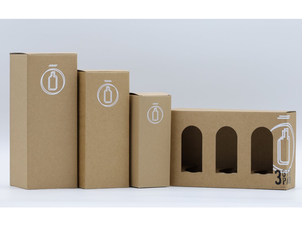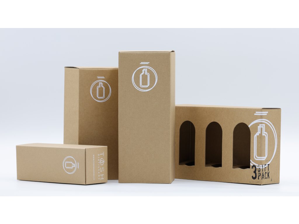 Lepenková dárková krabička s logem, bez razítka ve spodní části (na TŌSH gin s medvědem, Modrý gin, Twin a Ginu můžete mít krabičku s razítkem přímo u produktu). Nebo dejte vědět, jaké razítko máme natisknout. Na lahve 0,7 l, 0,5 l i 0,2 l. A také krabička 3x 0,1 l.
