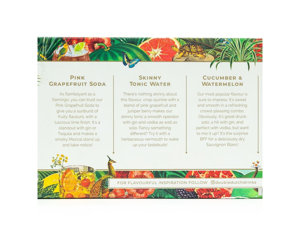 V Holandsku, rodišti ginu, vznikají také toniky a limonády Double Dutch. Za značkou stojí sestry – dvojčata, jež se rozhodly povznést obyčejný tonik na vyšší úroveň. Významný posun nastal v době, kdy získaly cenu Foodpreneur, v soutěži podnikatelů v oblasti stravování podporované Richardem Bransonem. Jejich nápad porotu zaujal a ocenili inovaci, kterou Double Dutch na nápojový trh přináší. Produkty značky ovšem dokážou zaujmout nejen odborníky, ale i ty, kteří si rádi dají sklenku doma na gauči. Double Dutch není náhodné spojení chutí, ale jedinečná kombinace kvalitních přírodních ingrediencí. Všechny příchutě jsou nízkokalorické, s pouhými 65 kaloriemi v jedné lahvičce.