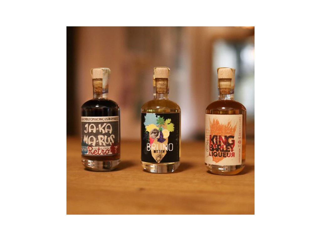 Dárkové nebo degustační balení prvorepublikového bylinného likéru. Původní tajná receptura. Jemná hořkosladká a kořeněná chuť. Silný extrakt (více než 50 %) z bylin a koření z celého světa. Zraje v dubových sudech.