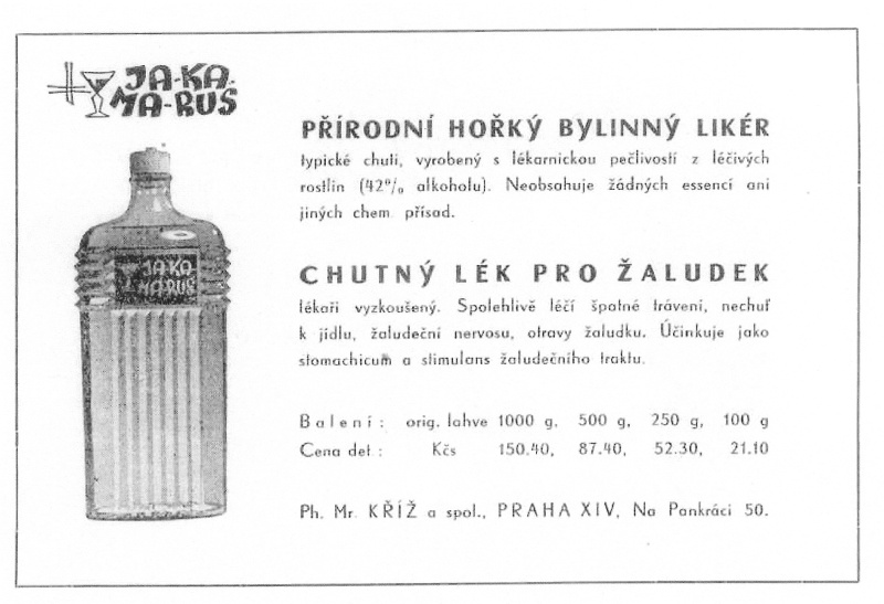 Už je to téměř jedno století, co je Jakamarus zapsaný coby ochranná známka. Konkrétně od 1. února 1932 v archivu Obchodní a živnostenské komory v Praze. A to coby „dietetická bylinná tinktura amara sacharatu“.