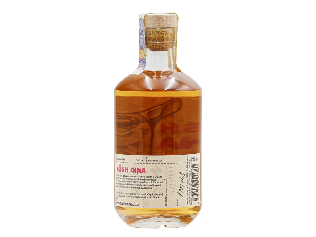 Mnohovrstevnatá ovocná bomba. Třetí edice TŌSH Ginu ze sudu. Víc než rok dlouhé zrání v sudu z francouzského dubu, v němž předtím zrálo červené víno z moravského vinařství Filiberk. Gin, jenž zkrásněl v sudu. Specialita.