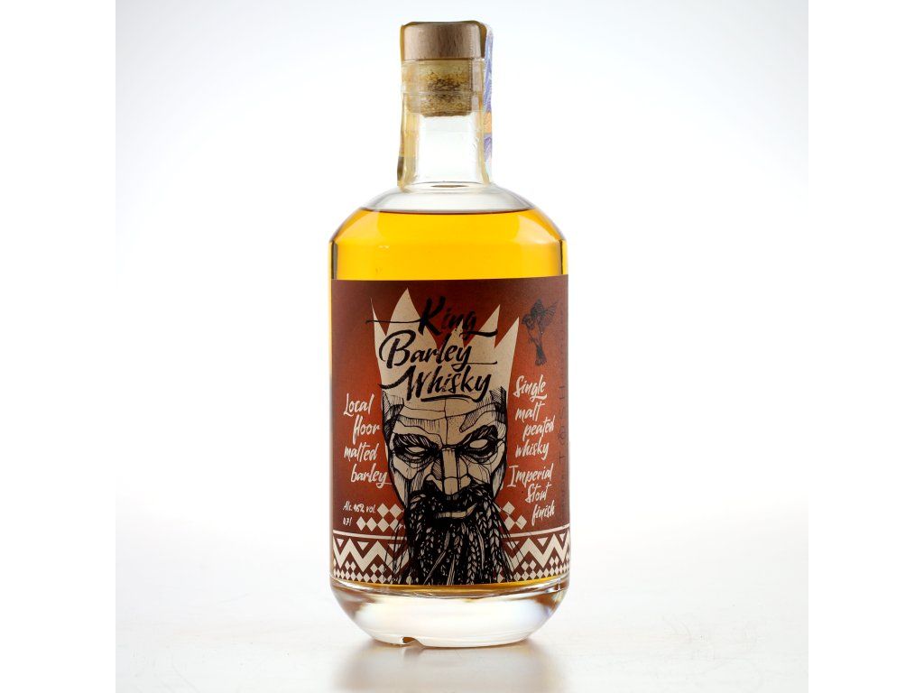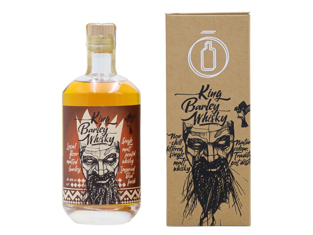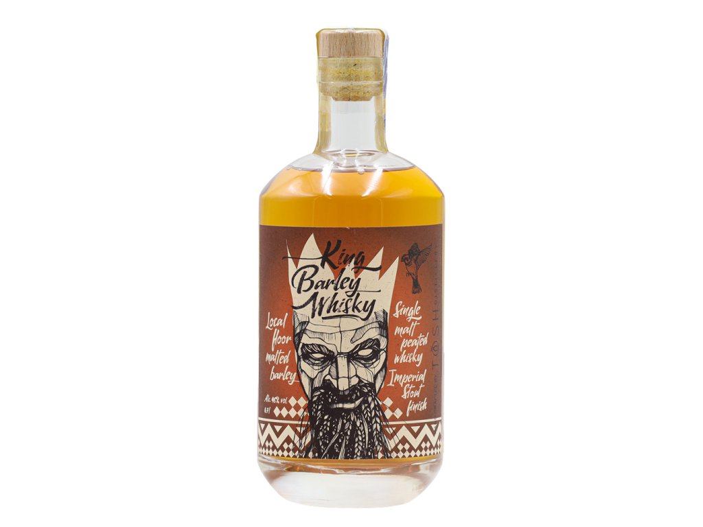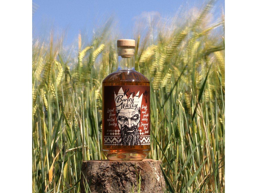 Naše zaměření na lokální produkci je známé. V Těšeticích pro nás vypěstovaný ječmen odrůdy Overture, zpracování sladu v blízké bruntálské sladovně a jak jen je to možné, tak místní sudy. Toto je první stáčení whisky King Barley s finishem z krnovských sudů po pivu Imperial Stout minipivovaru Nachmelená Opice. Tento sud jsme ale nijak neupravovali, po pivu do něj šel rovnou sladový destilát. Whisky má 4 roky.