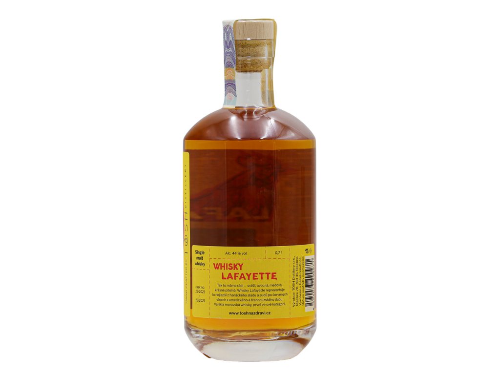 Svěží a skvěle pitelná, nenakouřená. Vyladěná verze whisky Lafayette. O procento silnější (z 43 na 44 %) a také kombinace dvou různých sudů po červeném víně – americký bílý dub a evropský dub. Hanácký slad, zakulacená chuť.
